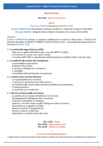 L’incontro ha visto la partecipazione di autorevoli esperti del settore, ed è stato aperto dai saluti istituzionali di Giorgio Strafonda, Vicesindaco e Assessore al Bilancio e Tributi del Comune di Tivoli, e di Riccardo Rapalli, Dirigente del Settore Tributi e Finanziario del Comune di Tivoli. Il confronto si è concentrato sui tributi e sulle entrate locali, temi strategici per il governo del territorio.